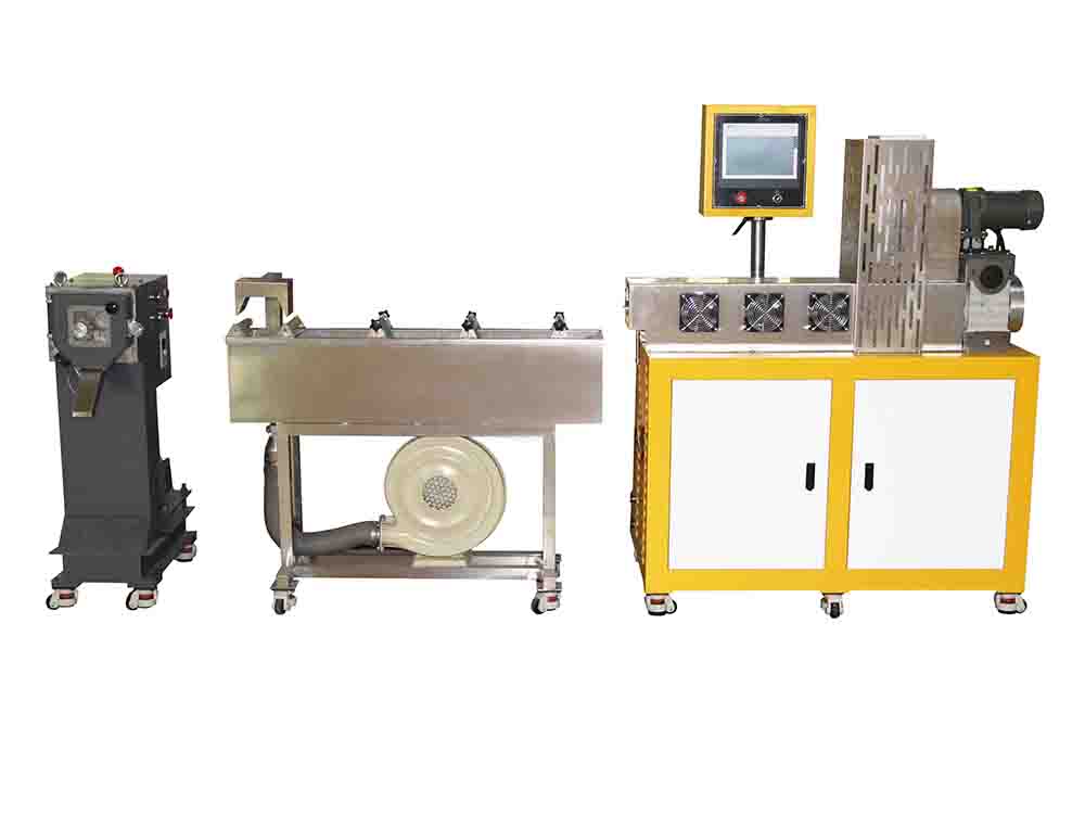 本機主要由主驅動電機、傳動裝置、擠出裝置、加料斗、電控系統(tǒng)、模頭等組成.其工作原理為:物流從料斗里放入經過擠出裝置的塑化和擠出變?yōu)榱餮訝顟B(tài),再從主機經模頭出來,擠出機組的用途不同其選配用的輔助設備也不盡相同。